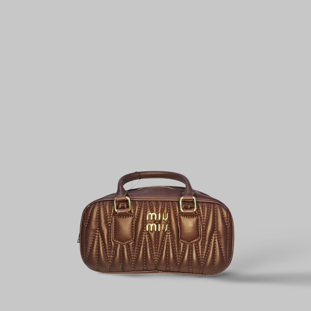 - شنطة ميو ميو ماستر تجمع بين الفخامة والأناقة من أول نظرة بخياطة مضلعة مميزة ولمسات ذهبية فاخرة تعطيها طابع راقي يلفت الأنظار ويعكس ذوقك.